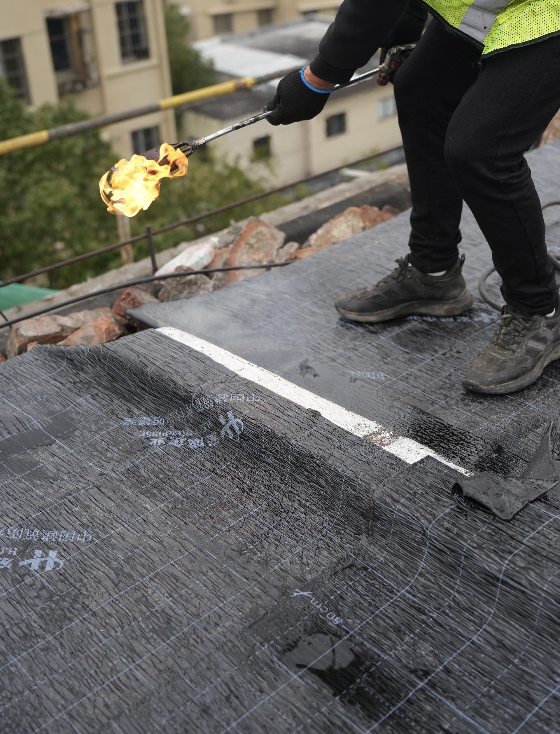熱熔施工時(shí)配備滅火器,遠(yuǎn)離易燃物;